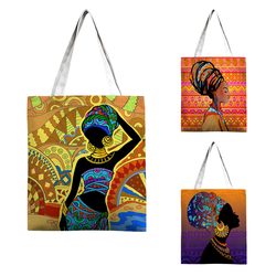 Bolsa de Mano con Estampado Afro Vibrante, Bolsa de Hombro de Lona Reutilizable para Mujer, Bolsa de Compras Ecológica Personalizable